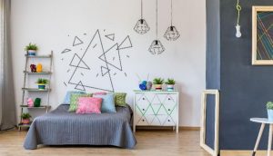 7. Arte en las paredes. Si buscas un cuarto más juvenil, anímate a colocar arte en las paredes. Figuras geométricas o imágenes tribales son una buena opción.